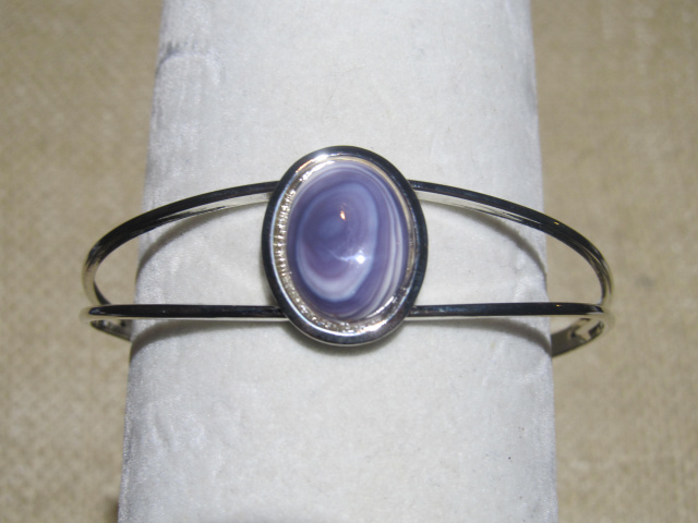 Our most popular size bangle. Medium sized wampum bead set in silver plated rhodium.